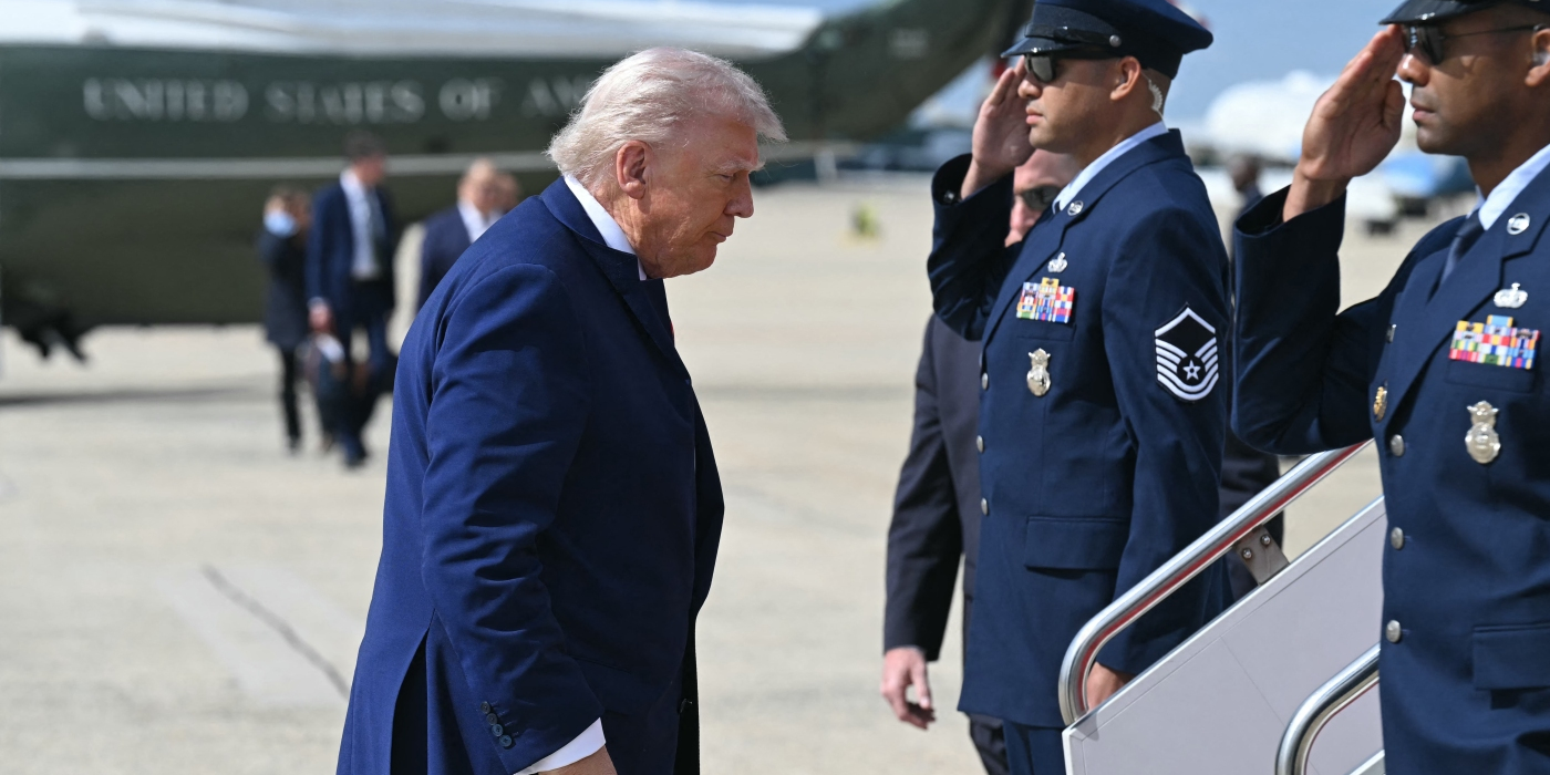 President Trump walks to board Air Force One prior to departure from Joint Base Andrews in Maryland on Friday en route to New Jersey for the weekend. Saul Loeb/AFP...