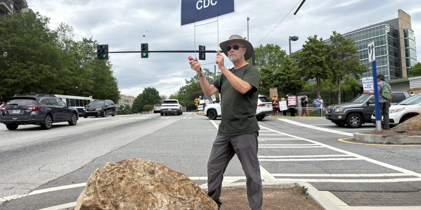Michael Beach, former deputy director of the Division of Foodborne, Waterborne and Environmental Diseases at CDC, attends a weekly protest outside the agency's main campus in Atlanta. Pien Huang/NPR...