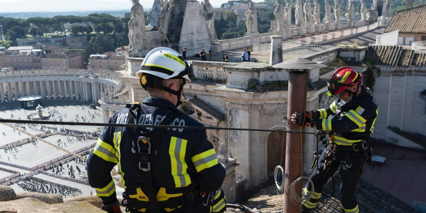 The Vatican installs chimney to signal the selection of the next pope