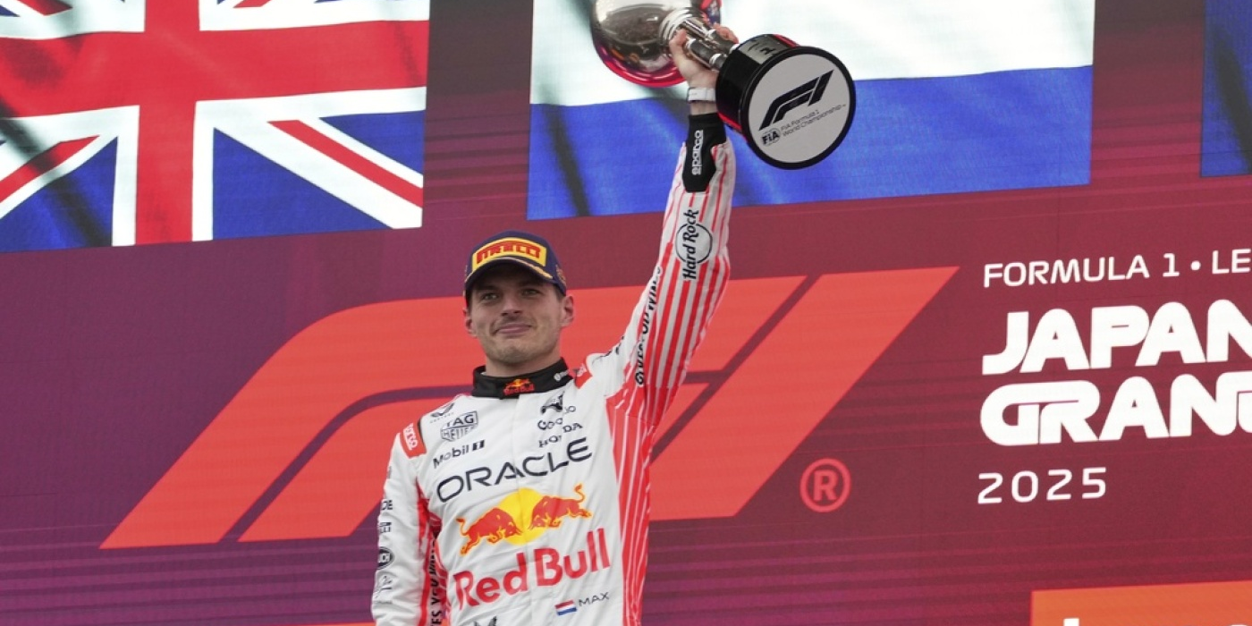F1 driver Max Verstappen of the Netherlands raises his trophy after the Japanese Formula One Grand Prix on April 6, 2025. Shuji Kajiyama/AP/AP hide caption toggle caption Shuji Kajiyama/AP/AP...