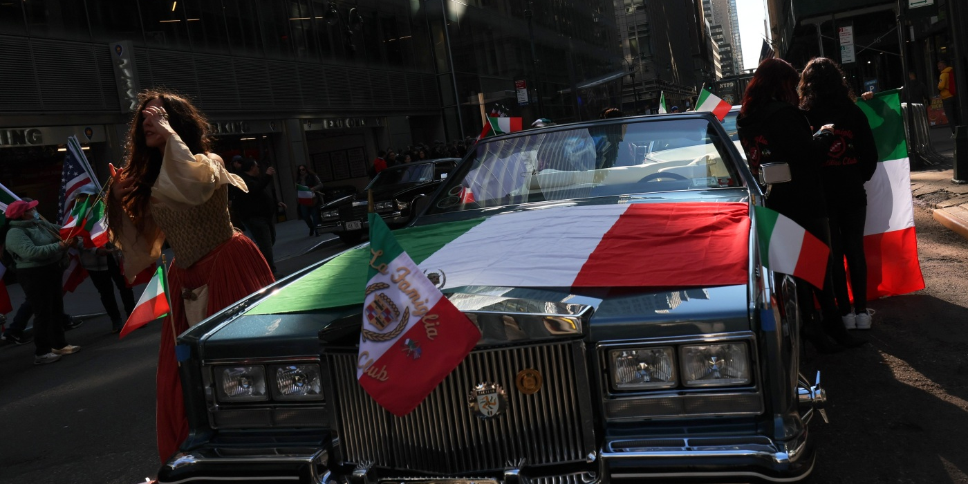A car with an Italian flag is seen at the annual Columbus Day Parade in New York City in 2023. Michael M. Santiago/Getty Images North America hide caption toggle...