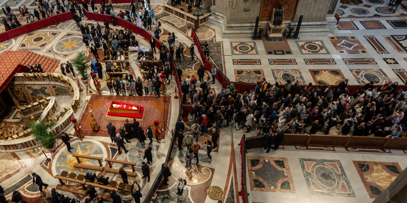 The body of Pope Francis lies in state in St. Peter's Basilica on April 24, 2025. Michael Kappeler/picture alliance via Getty Images hide caption toggle caption Michael Kappeler/picture alliance...