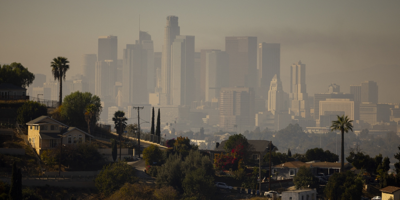 A layer of smog lingers above downtown Los Angeles in 2024. Millions of Americans are still breathing in unhealthy air, despite long-term progress toward cleaning up many sources of...