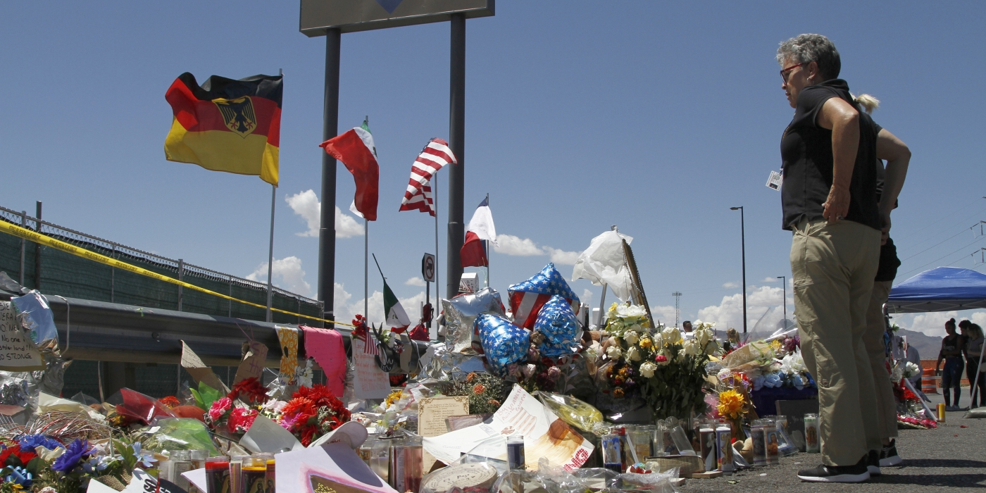 In this Aug. 12, 2019 photo, mourners visit the makeshift memorial near the Walmart in El Paso, Texas. Cedar Attanasio/AP hide caption toggle caption Cedar Attanasio/AP EL PASO, Texas...