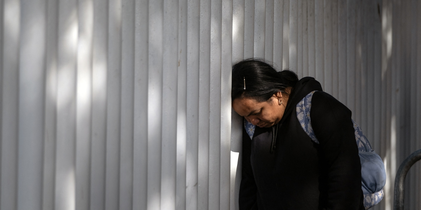 An asylum seeker reacts while waiting for news on her appointment with U.S. authorities before crossing through El Chaparral port in Tijuana, Baja California state, Mexico, on Jan. 20,...