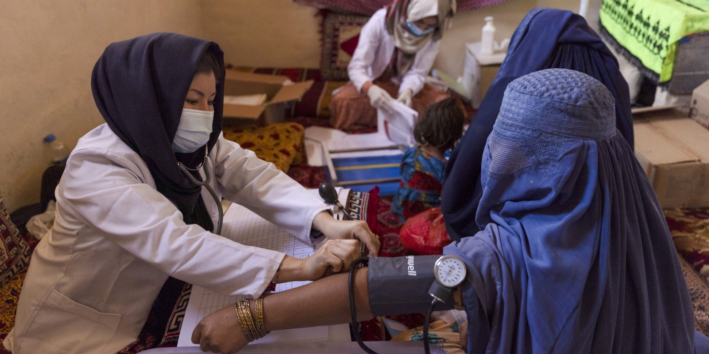 A midwife assesses a pregnant woman at a mobile health clinic in Afghanistan. In the wake of the freeze of USAID, some 200 clinics in the country have had...