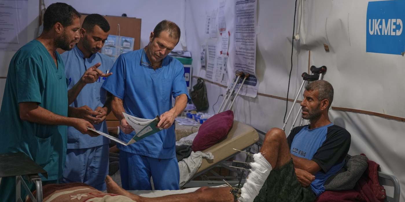 Dr. Paul Ransom of the British humanitarian medical NGO UK-Med, assisted by local medical staff, treats patients at a field hospital in Muwasi, near Khan Younis in the southern...