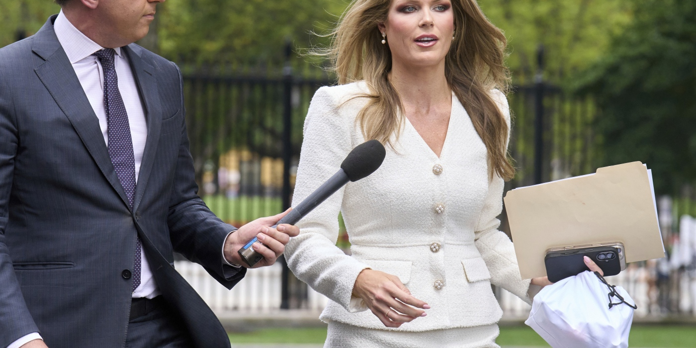 FILE - Lindsey Halligan, special assistant to the president, speaks with a reporter outside of the White House, Wednesday, Aug. 20, 2025, in Washington. Jacquelyn Martin/AP hide caption toggle...
