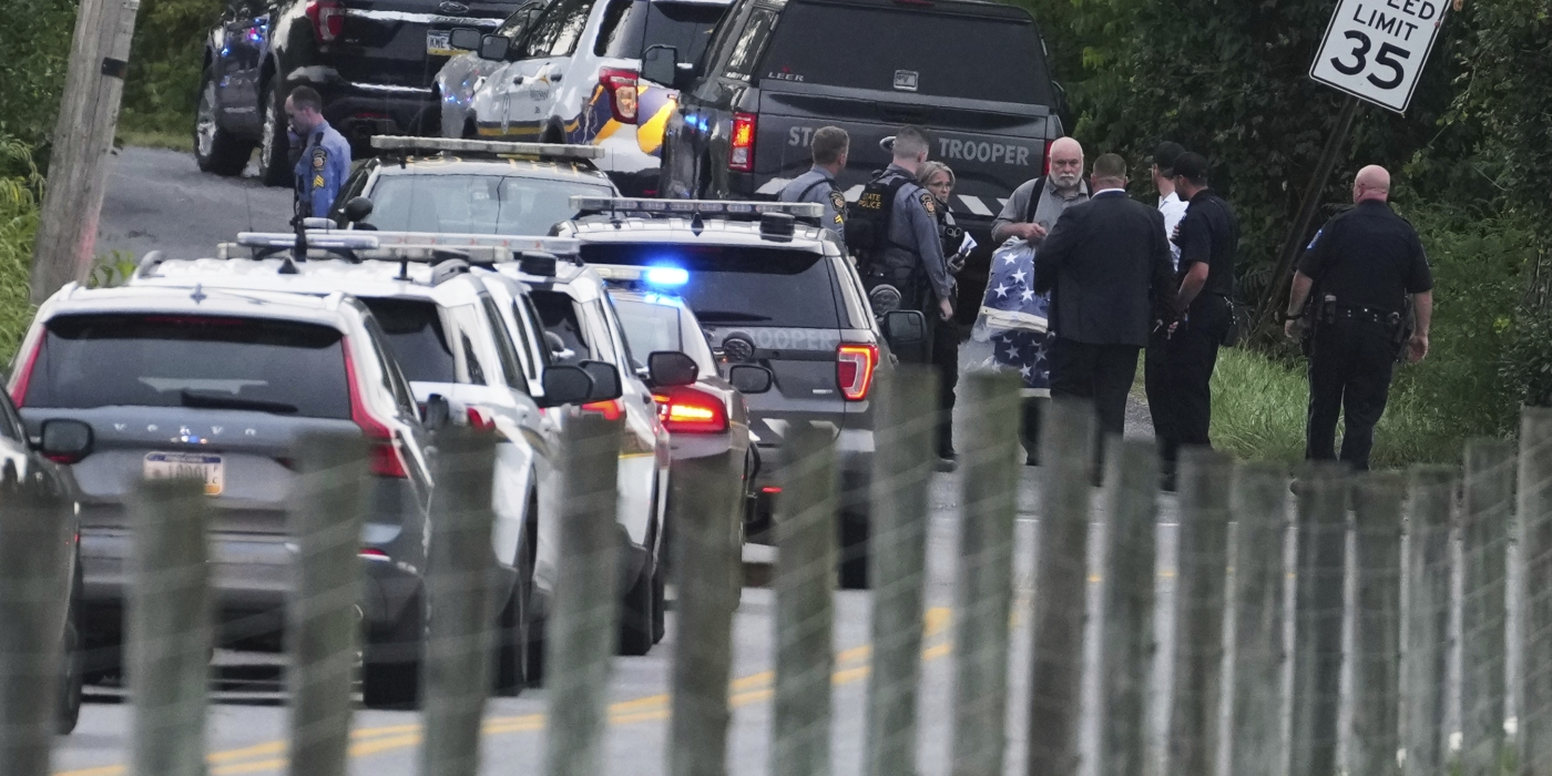 First responders work the scene after five officers were shot on Wednesday in North Codorus, Pa. Matt Slocum/AP hide caption toggle caption Matt Slocum/AP Three law enforcement officers were...