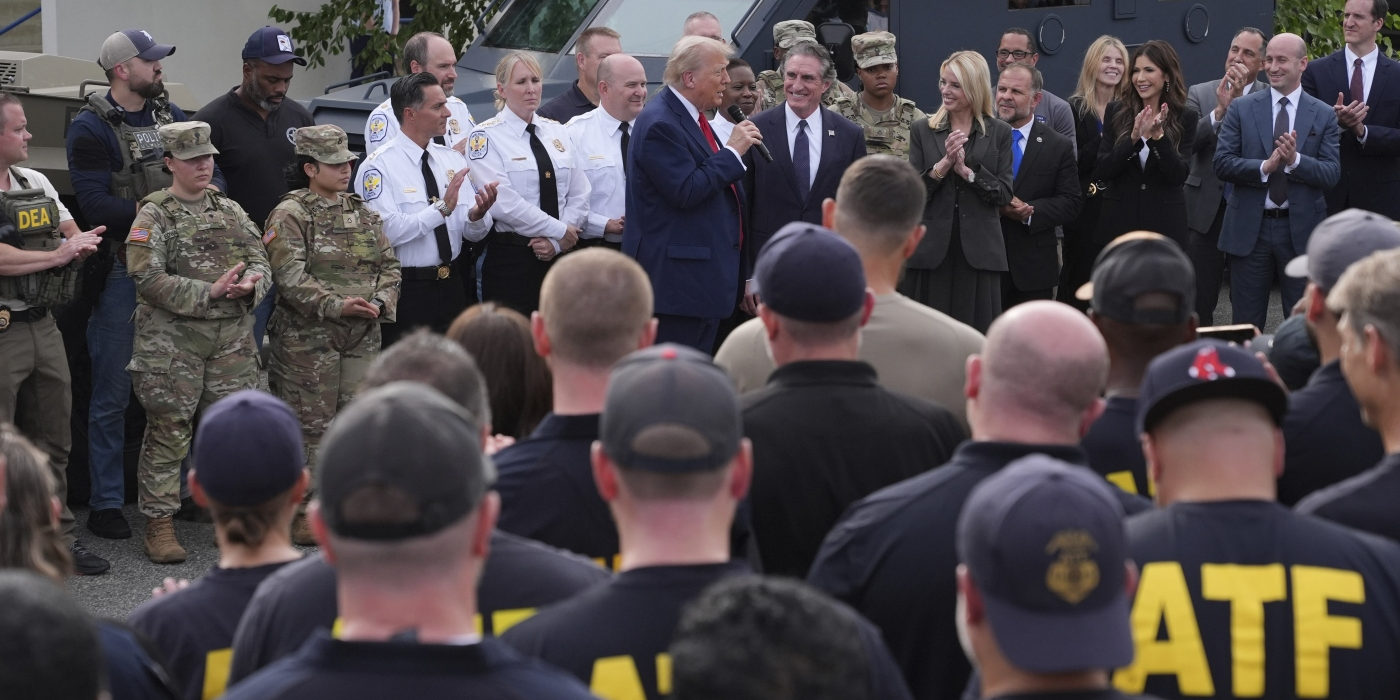 President Donald Trump speaks with members of law enforcement and National Guard soldiers on Aug. 21, 2025, in Washington. Jacquelyn Martin/AP hide caption toggle caption Jacquelyn Martin/AP The Trump...