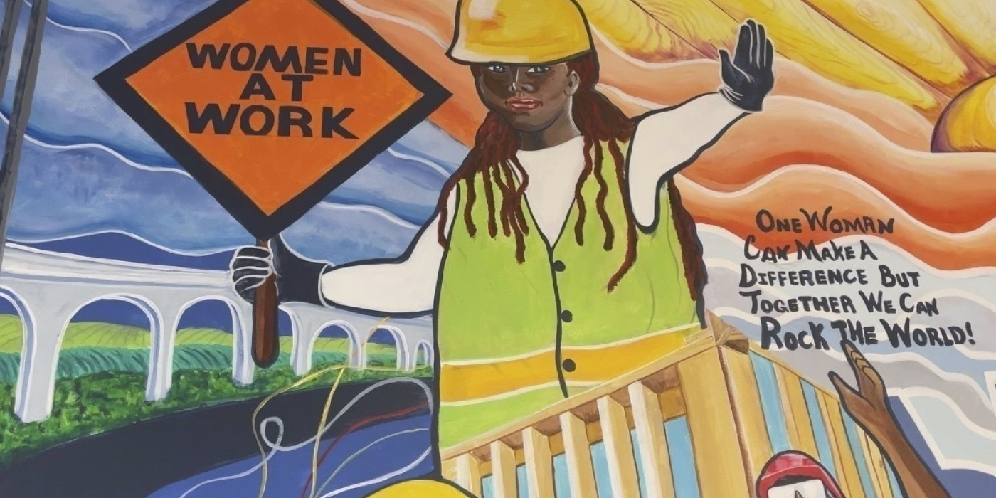A mural by artist Tene Smith is seen near the entrance of Chicago Women in Trades, a nonprofit dedicated to training and retaining women in the skilled construction trades...