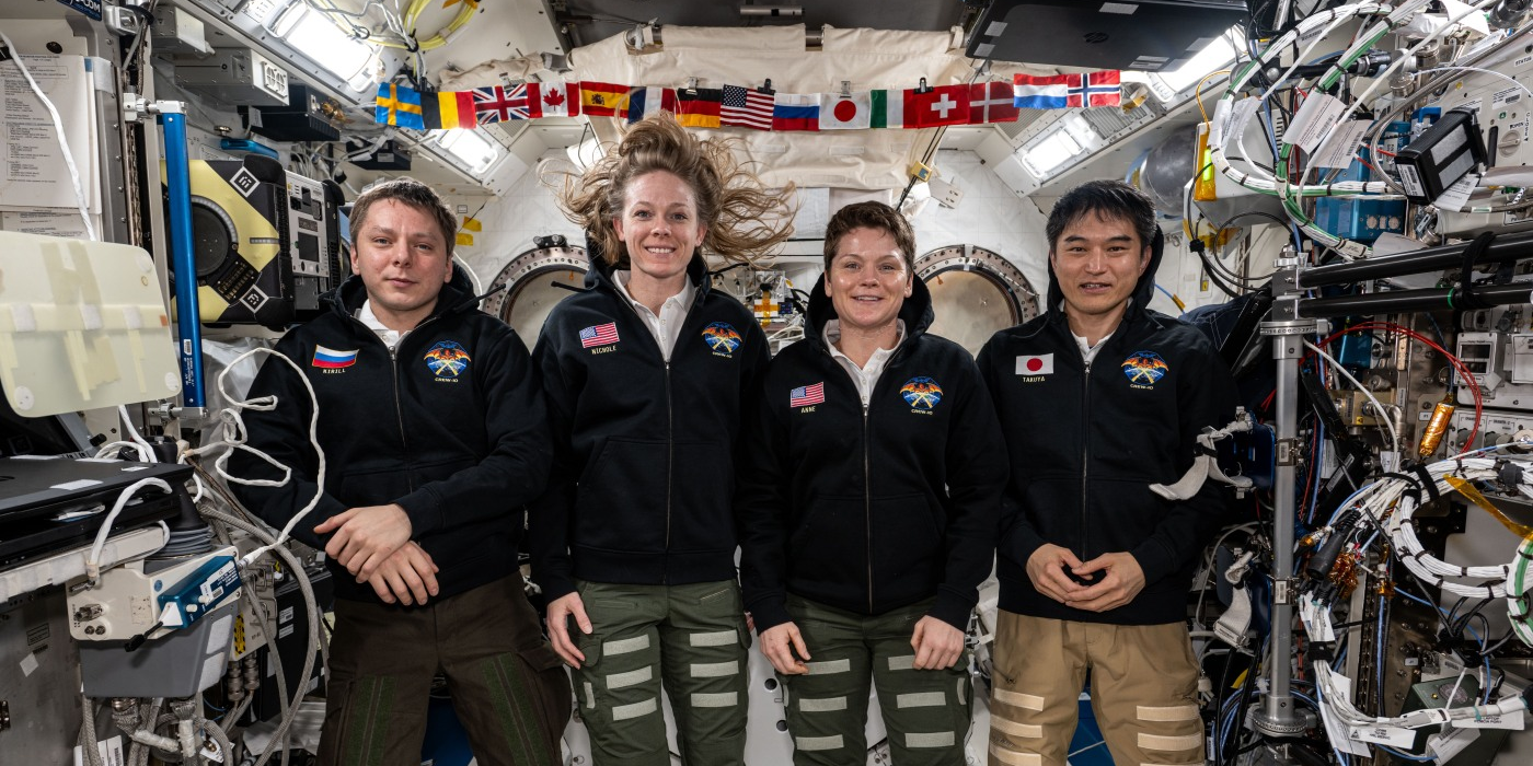 From left, NASA's SpaceX Crew-10 members Kirill Peskov of Roscosmos, NASA astronauts Nichole Ayers and Anne McClain, and JAXA (Japan Aerospace Exploration Agency) astronaut Takuya Onishi pose for a...