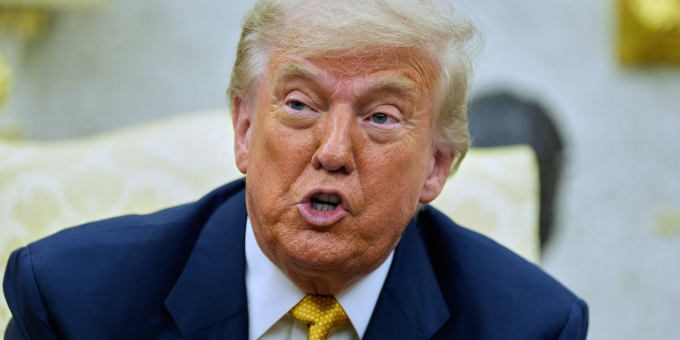 President Donald Trump speaks during a meeting with Bahrain's Crown Prince Salman bin Hamad Al Khalifa in the Oval Office of the White House, Wednesday, July 16, 2025, in...