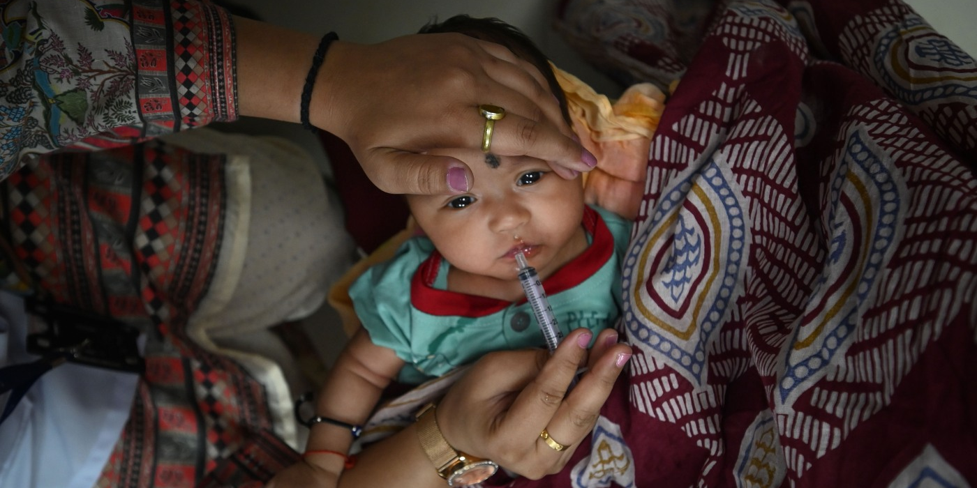 A child gets an oral vaccine in New Delhi, India, on June 17. India has made notable progress in improving access to childhood vaccinations. Sanchit Khanna/Hindustan Times/via Getty Images...