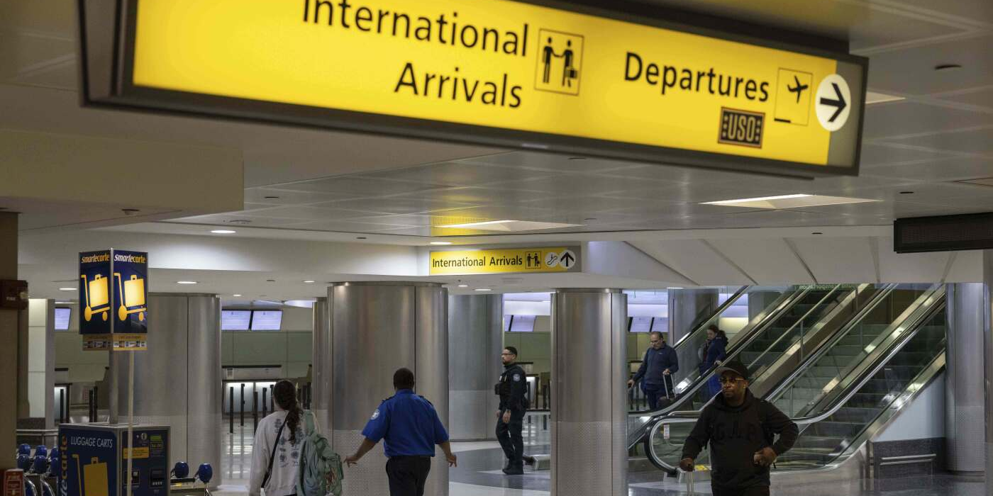 Travelers pass through Newark Liberty International Airport's international terminal after President Trump's new travel ban took effect on Monday. Yuki Iwamura/AP hide caption toggle caption Yuki Iwamura/AP President Trump's...