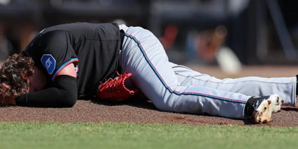 Marlins’ Ryan Weathers struck in head by catcher’s warmup throw in bizarre moment vs. Rays