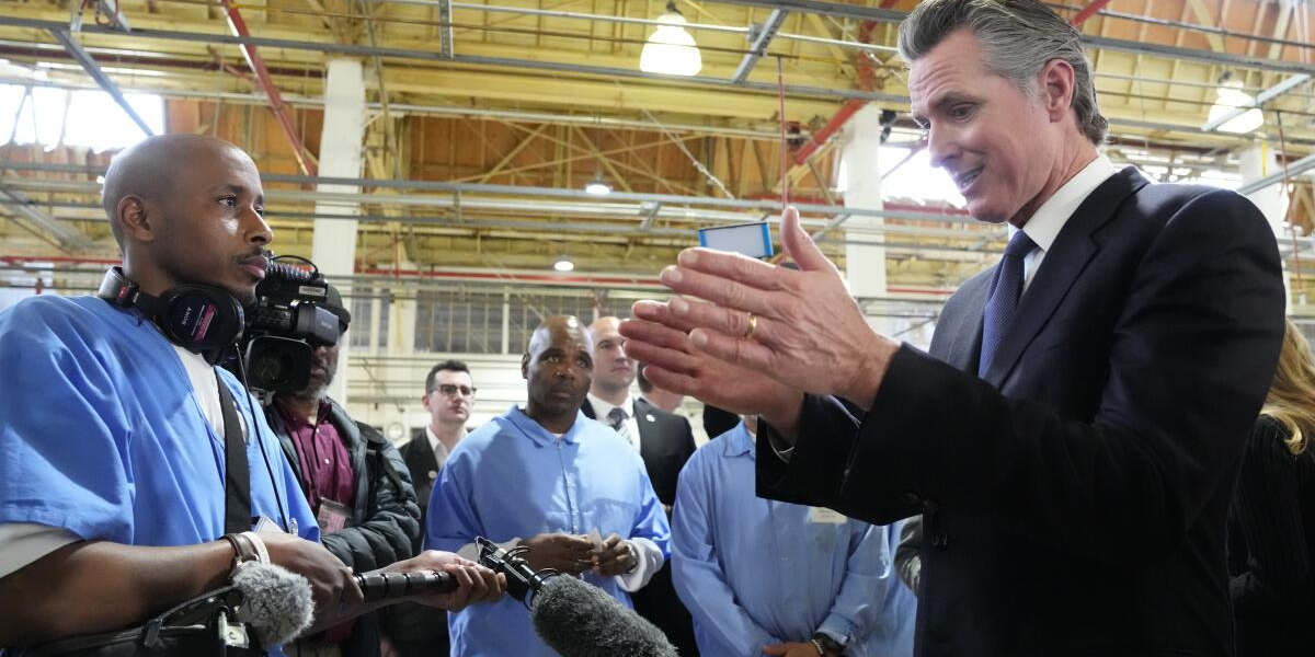 On a recent morning inside San Quentin prison, Los Angeles County Dist. Atty. Nathan Hochman and more than a dozen other prosecutors crowded into a high-ceilinged meeting hall surrounded...