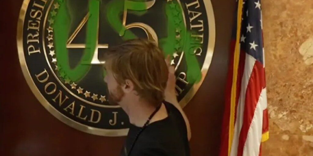 Climate activist vandalizes presidential insignia inside Trump Tower: ‘Ruining the planet for profit’
