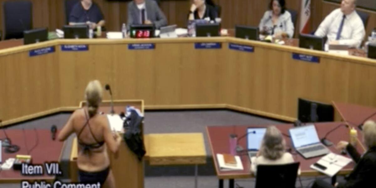 Woman undresses at a California school board meeting to protest transgender bathroom policies