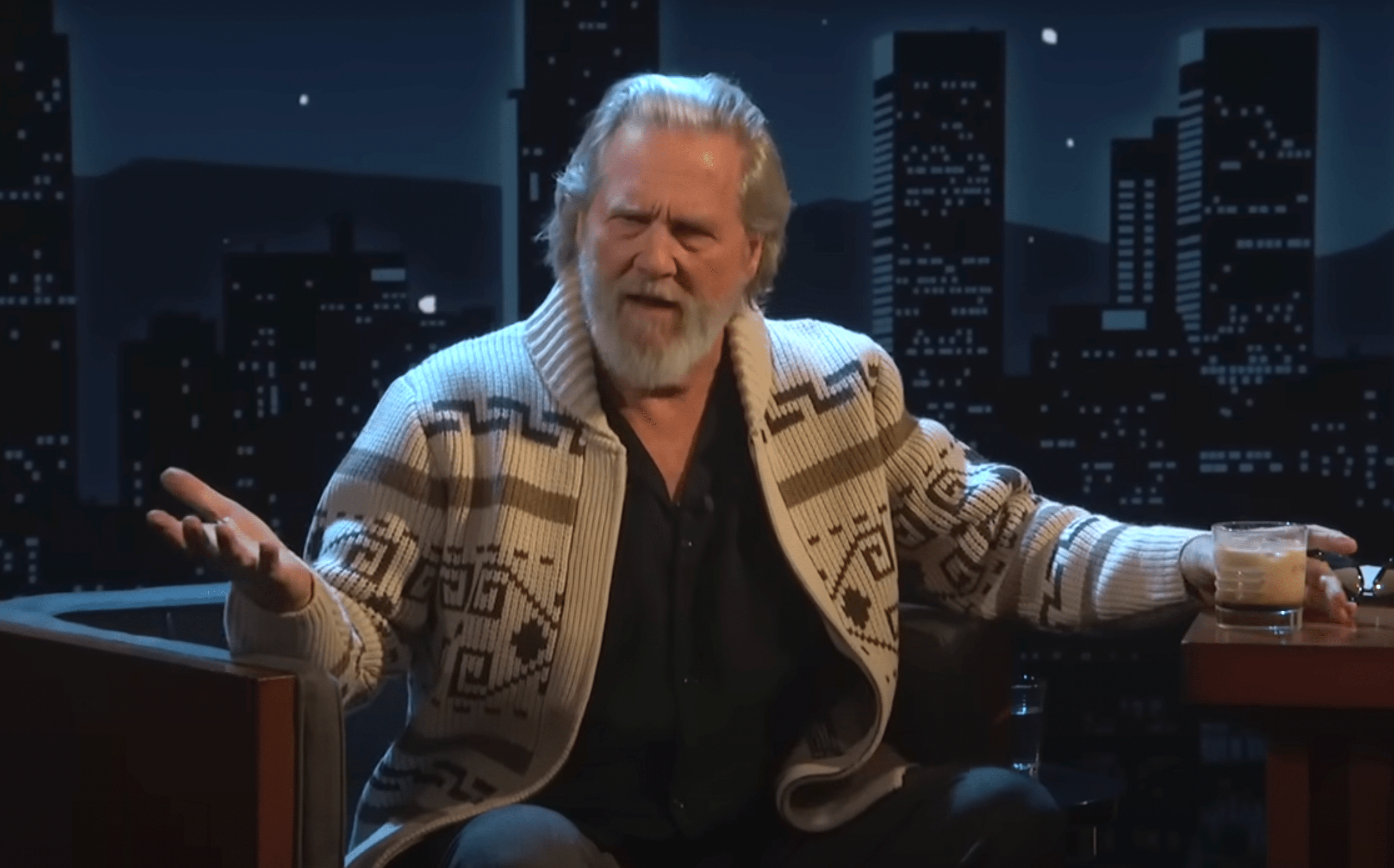 Kimmel conveniently whipped out a cardigan and a pair of sunglasses to help Bridges channel The Dude, which remains one of his most iconic characters. The actor happily agreed and was handed a White Russian drink to help him complete his transformation back into The Dude.